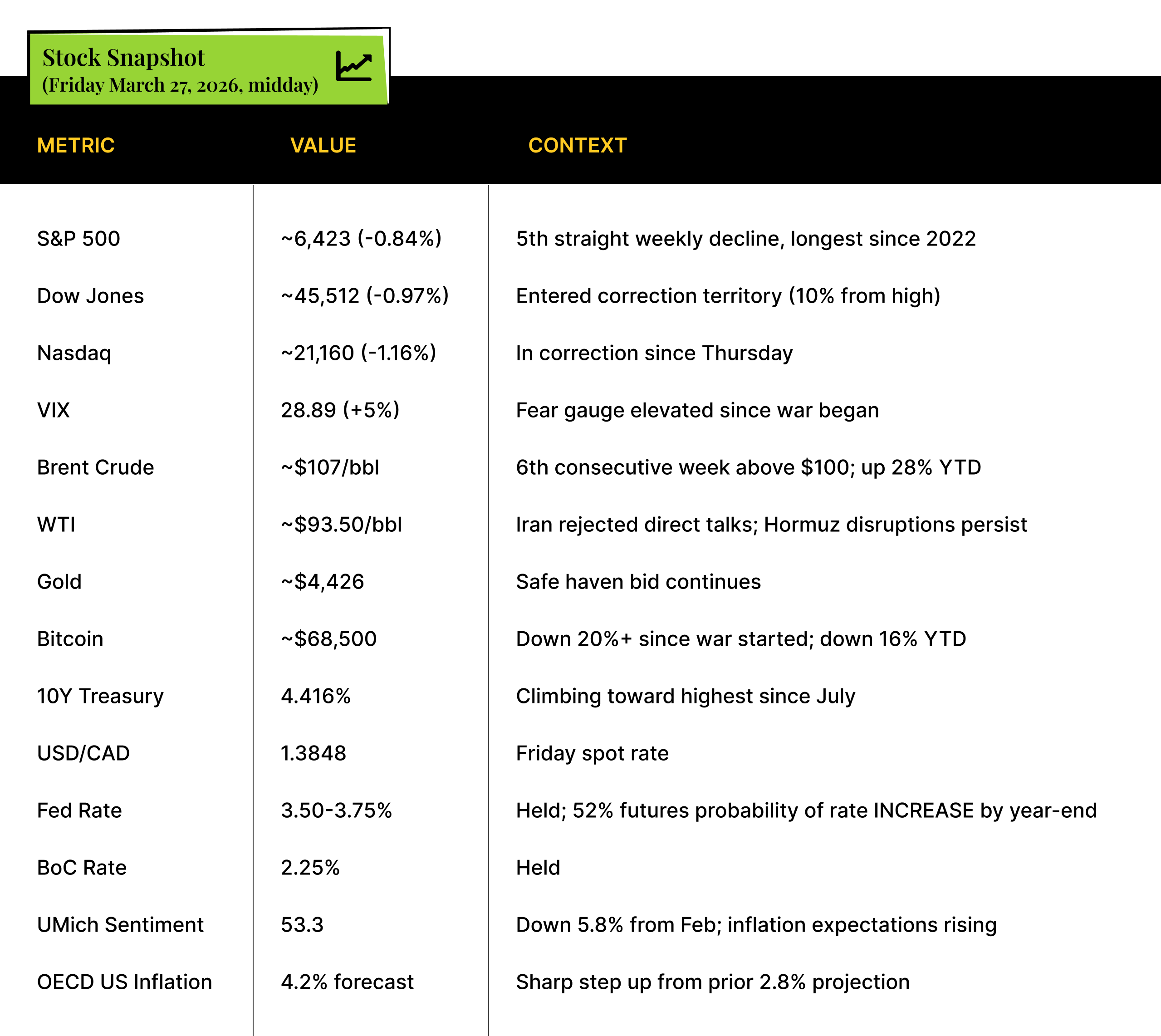 Stavridis also noted he was surprised oil didn't immediately hit $150 when the war started, and flagged fertilizer as the overlooked risk. A third of the world's fertilizer passes through the Strait of Hormuz. Unlike oil, where you can top up storage tanks anytime, if you miss a planting season, you never recover that. BlackRock's Larry Fink, who just weeks ago was telling investors to buy the dip, reversed course this week and warned of a recession if oil stays above $100. The consideration of post-war investment opportunities while the bombs are still falling is either visionary or macabre. Possibly both. I personally do not have a Carlyle-sized chequebook, but I appreciate their honesty.