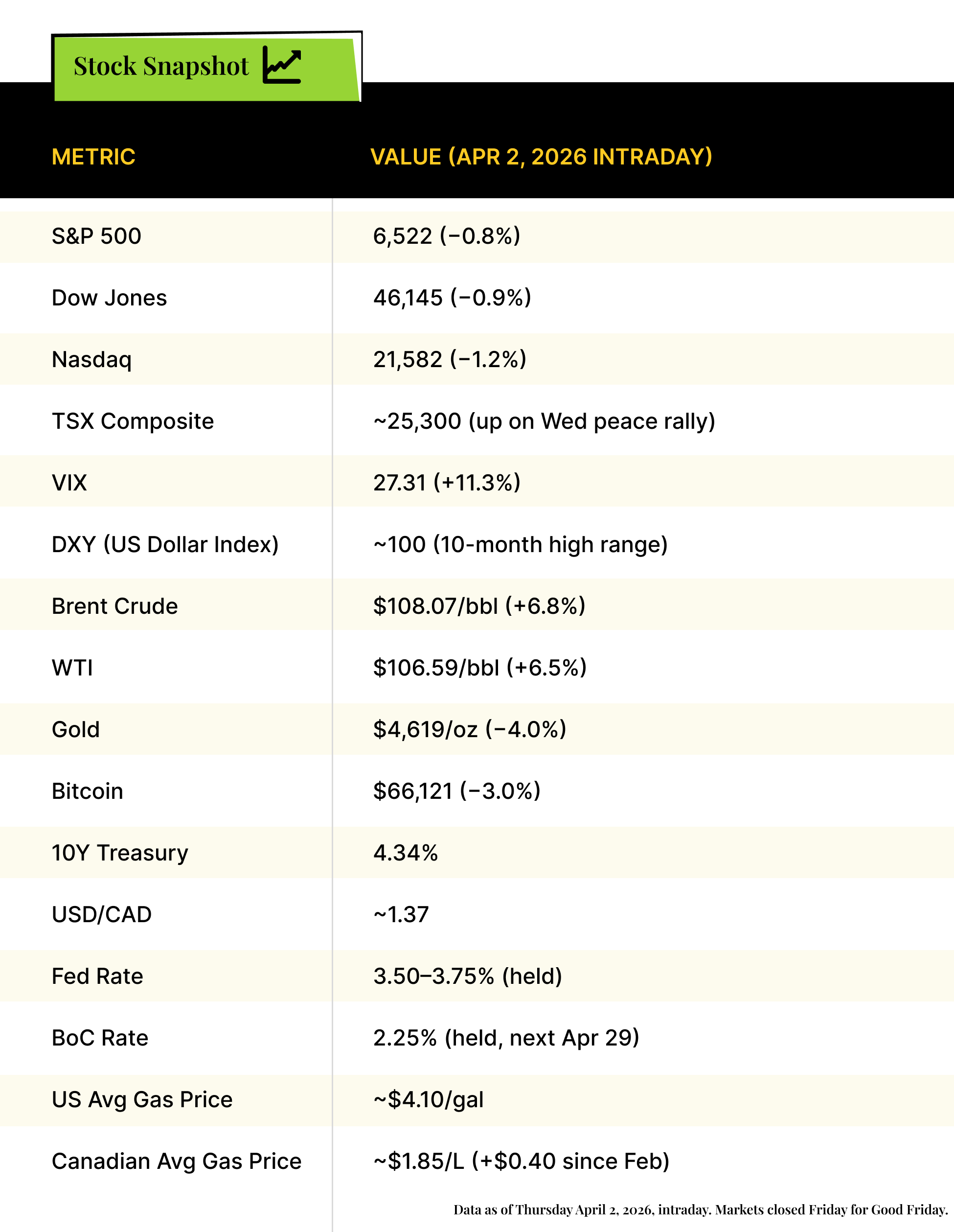 Data as of Thursday April 2, 2026, intraday. Markets closed Friday for Good Friday.